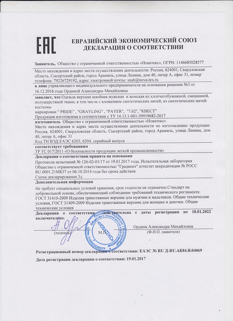 ДЕКЛАРАЦИЯ НА ОДЕЖДУ NOVATEX ДО 18.01.2022 Cкачать |