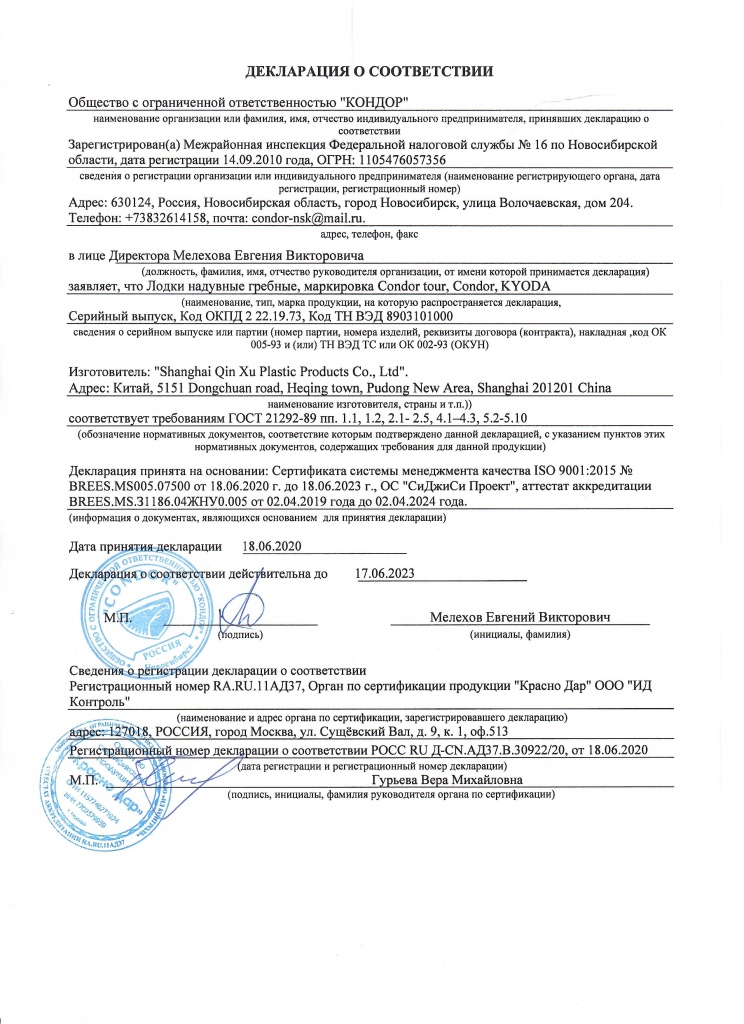 ДЕКЛАРАЦИЯНА ЛОДКИ КОНДОР ДО 18.06.2023 Скачать |