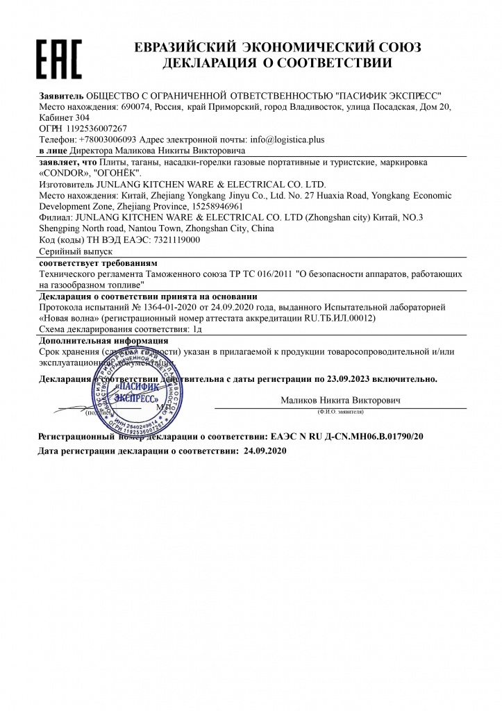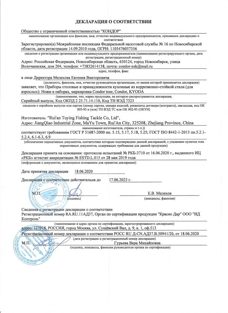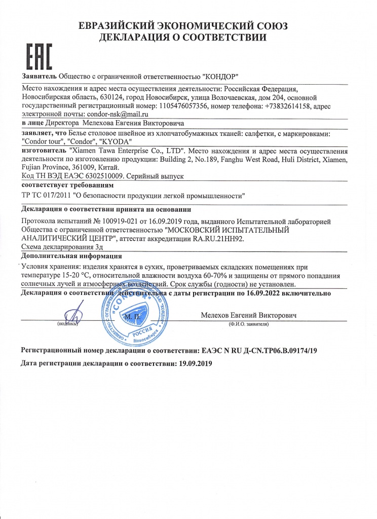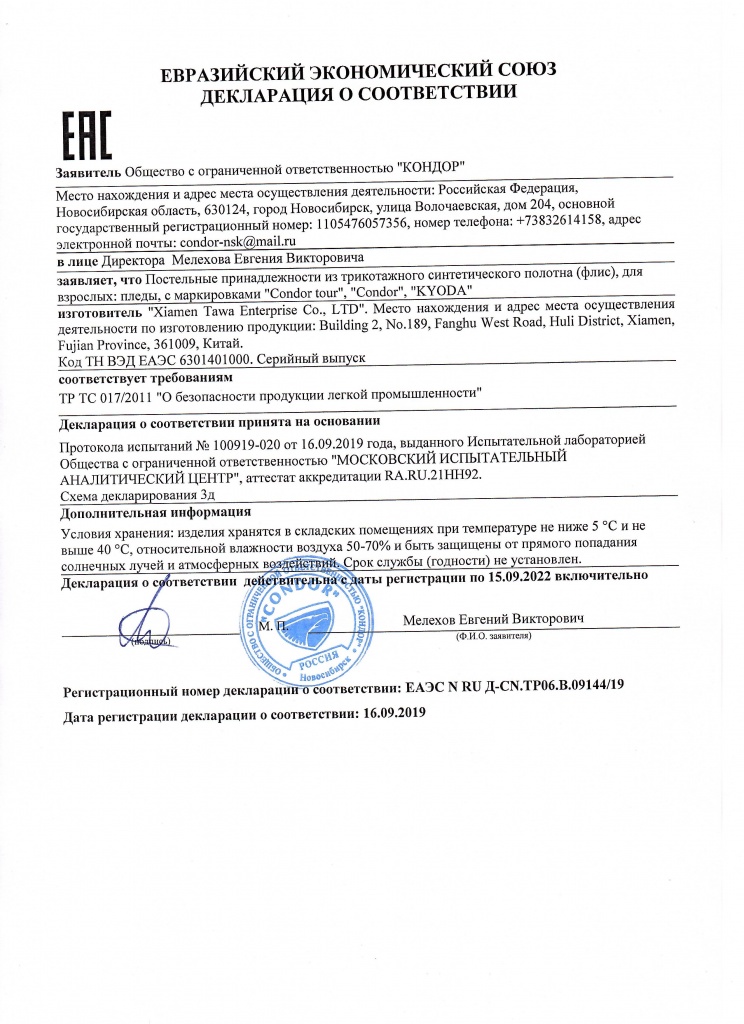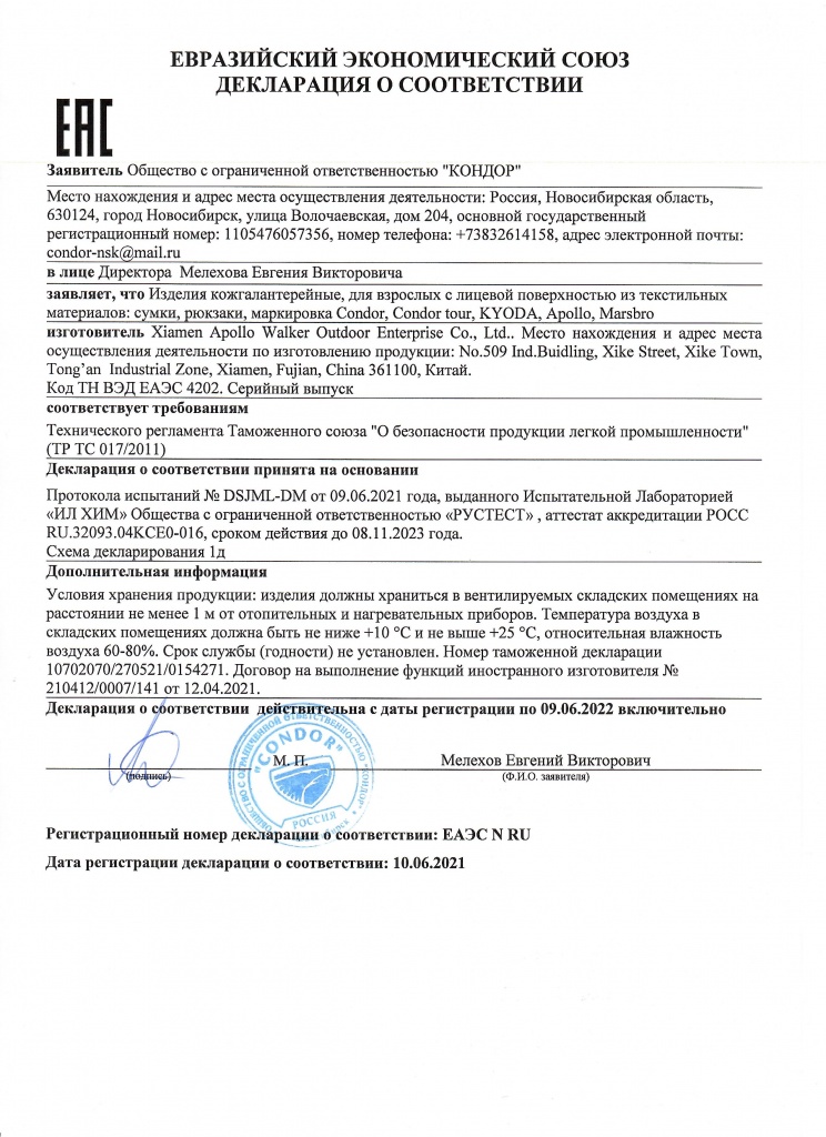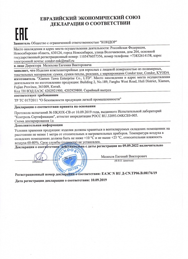 ДЕКЛАРАЦИЯ НА МЕБЕЛЬ CONDOR TOUR (серии YB, HB) ДО 19.08.2024 Cкачать |