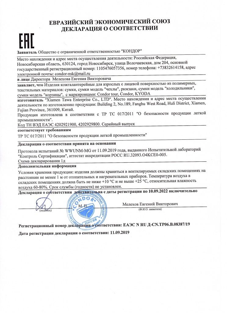 ДЕКЛАРАЦИЯ НА СУМКИ, СУМКИ-ХОЛОДИЛЬНИКИ, СУМКИ-КОРЗИНЫ ДО 10.09.2022 Cкачать |