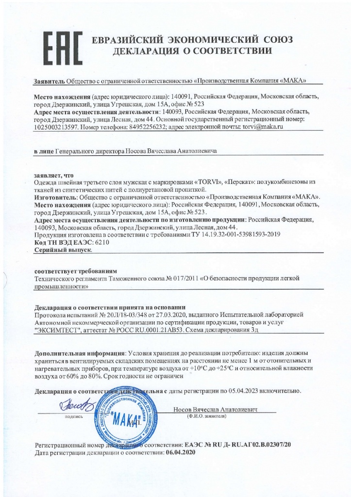 ДЕКЛАРАЦИЯ НА ПЛАЩИ И КОСТЮМЫ ВЛАГОЗАЩИТНЫЕ ДО 02.07.2024 Скачать |