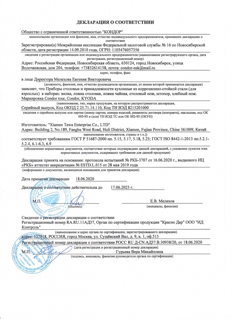 ДЕКЛАРАЦИЯ НА ПРИБОРЫ СТОЛОВЫЕ МЕТАЛЛИЧЕСКИЕ ИЗ НАБОРОВ ДЛЯ ПИКНИКА ДО 17.06.2023 Cкачать |
